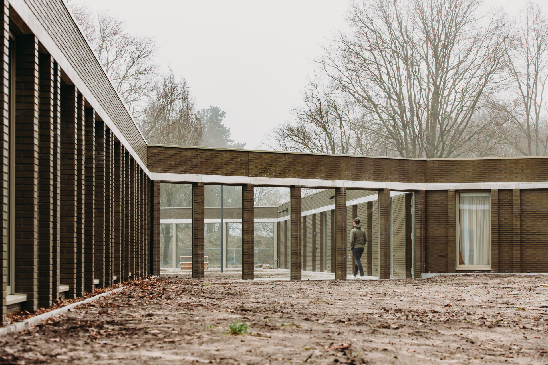Het Knooppunt en de ‘vlinders’ zijn met elkaar verbonden door een ruime binnentuin die uitkijkt op de omliggende bosrijke omgeving. Deze binnentuin fungeert als natuurlijke begrenzing en zorgt ervoor dat patiënten binnen het terrein blijven. Buiten deze grens, waar de patiëntenkamers in de vlinders op uitkijken, gaat het landschap naadloos over in de omgeving.