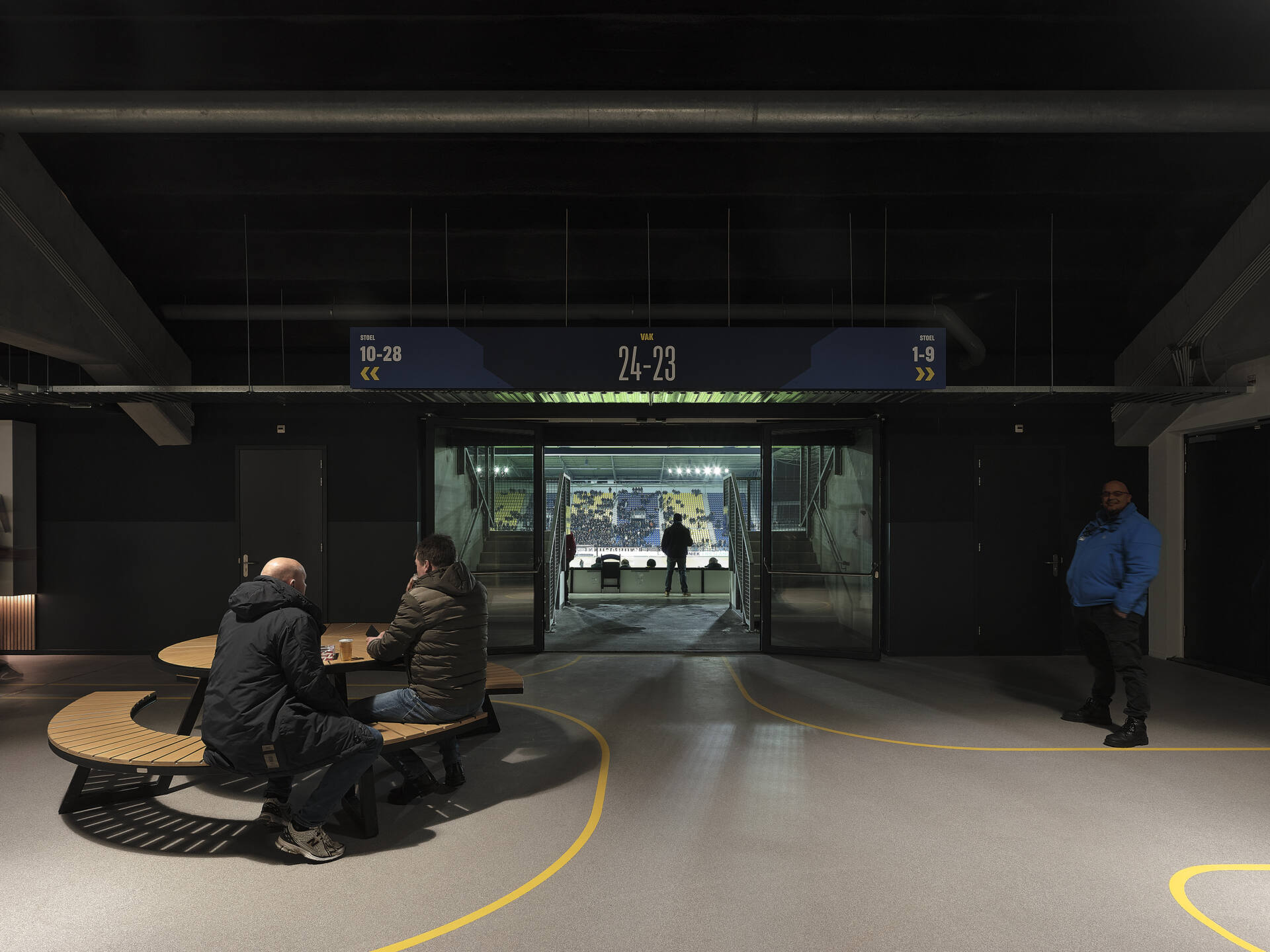 Team Vakwerk Noord gaat met haar onderwijservaring en lokale betrokkenheid samen met Firda op zoek naar de passende vormgeving van de nieuwe leeromgeving, binnen het gegeven volume van het stadion. Een herkenbare identiteit van de school, transparantie en ontmoeting (cross-overs van de opleidingen) staan daarin centraal.