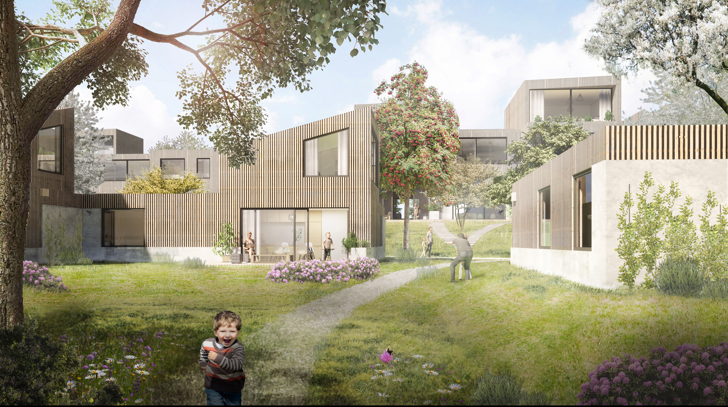 Wonen in de natuur is voor veel mensen een droom. In het plan zijn de woning zelf, de houten constructie en de leefruimten allen gericht op de natuur. Grote ramen en naadloze aansluitingen tussen woonruimten en buitenruimte brengen de bewoners in contact met het park. Doordat buitenruimte onderdeel zijn van de woningen, en een voetstap hoger liggen, is er een heldere scheiding waar het park begint en waar het privé gebruik van de bewoners stopt. Een rijke inrichting met planten en voorzieningen aan de woningen stimuleert een grote variatie aan dieren in deze omgeving.