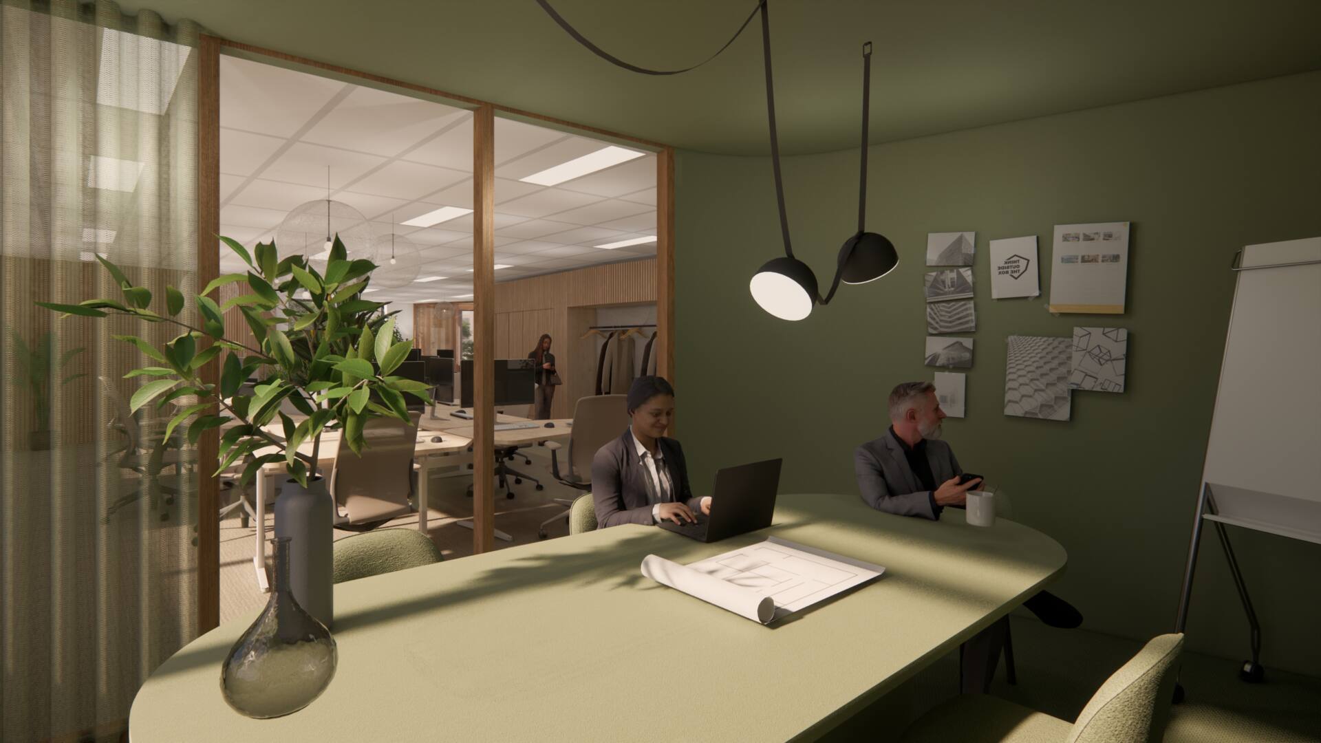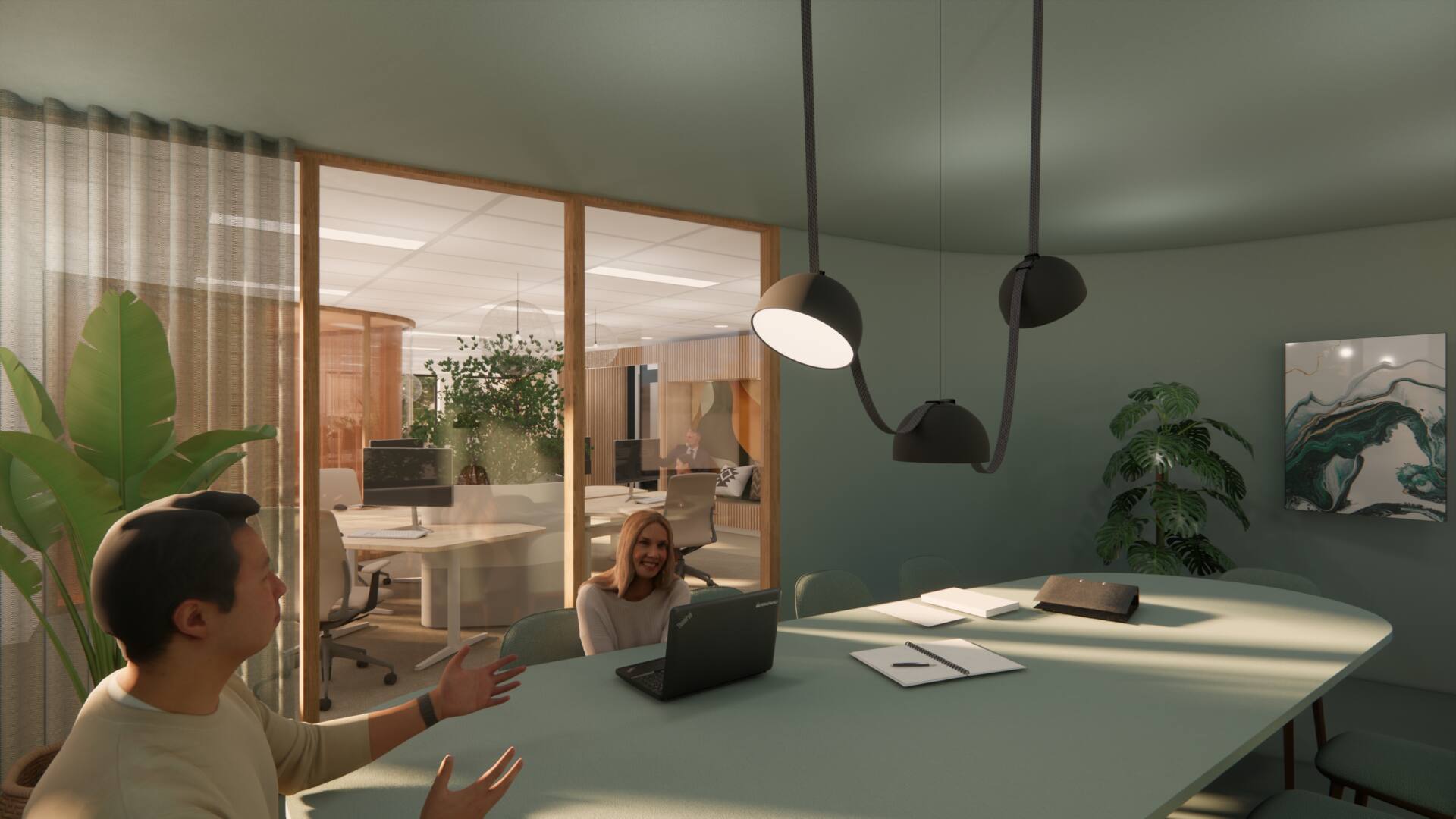 Elke ruimte kreeg een kleur die past bij het gebruik. Diepere tinten op plekken waar rust gewenst is. Lichtere, frisse kleuren in de ruimtes waar overleg en ontmoeting plaatsvinden. Transparante vergaderruimtes in het midden laten het licht door en houden het vloerplan open. Het geheel voelt zacht en natuurlijk. Kleuren, materialen en licht werken samen en versterken het comfort van de ruimte. Dat is pas fijn werken.