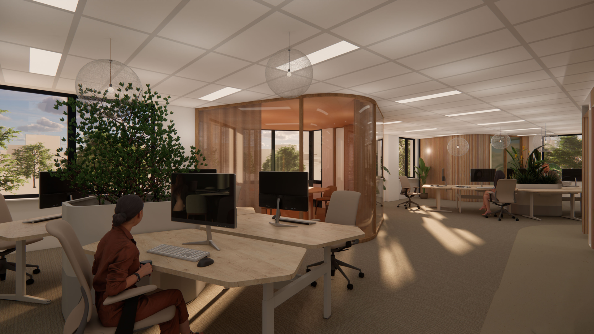 Hoogteverschillen in de werk-eilanden zorgen voor een spannend maar overzichtelijk beeld. Verstelbare bureaus zijn op maat gemaakt voor ergonomisch werken. Elke werkplek voelt eigen, zonder afgesloten te zijn. Zo ontstaat een omgeving waar je graag werkt en makkelijk samenkomt.