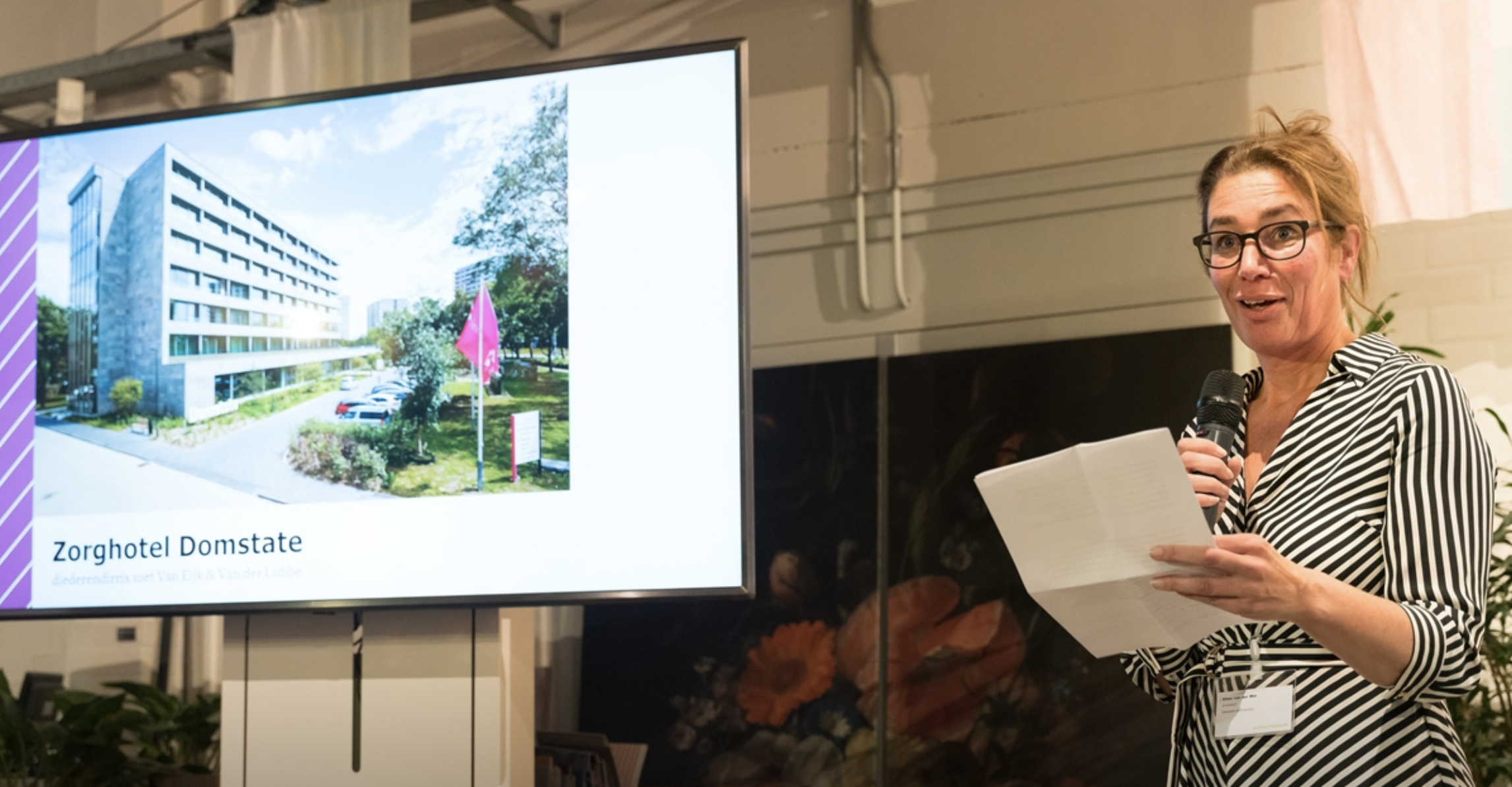 Tijdens de feestelijke prijsuitreiking van de Architectenweb Awards 2019 is de Zorghotel Domstate in Utrecht bekroond als Zorggebouw van het Jaar. Ellen van der Wal nam in de jury plaats en mocht namens de jury op donderdag 31 oktober de prijs in Broeinest Amsterdam uitreiken aan diederendirrix en Van Eijk & van der Lubbe.
