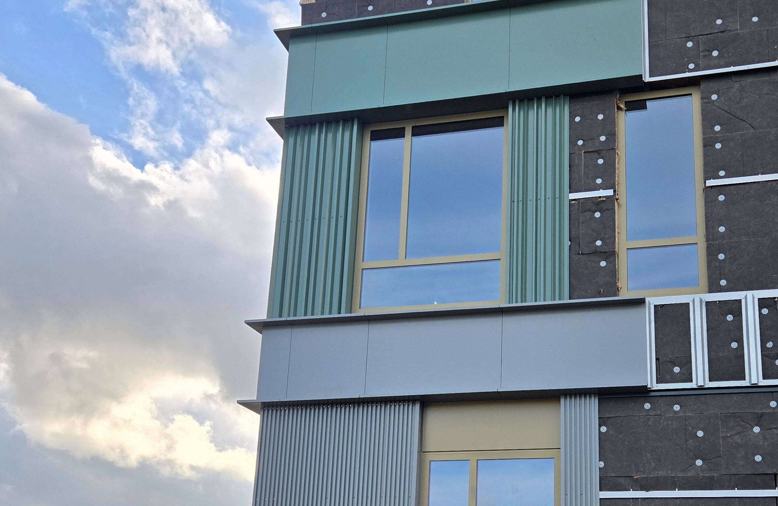 De mock-up van de gevel voor het Slingeland Ziekenhuis staat sinds deze week opgebouwd. Samen met het bouwteam controleren we de materialen, kleuren en aansluitingen.
