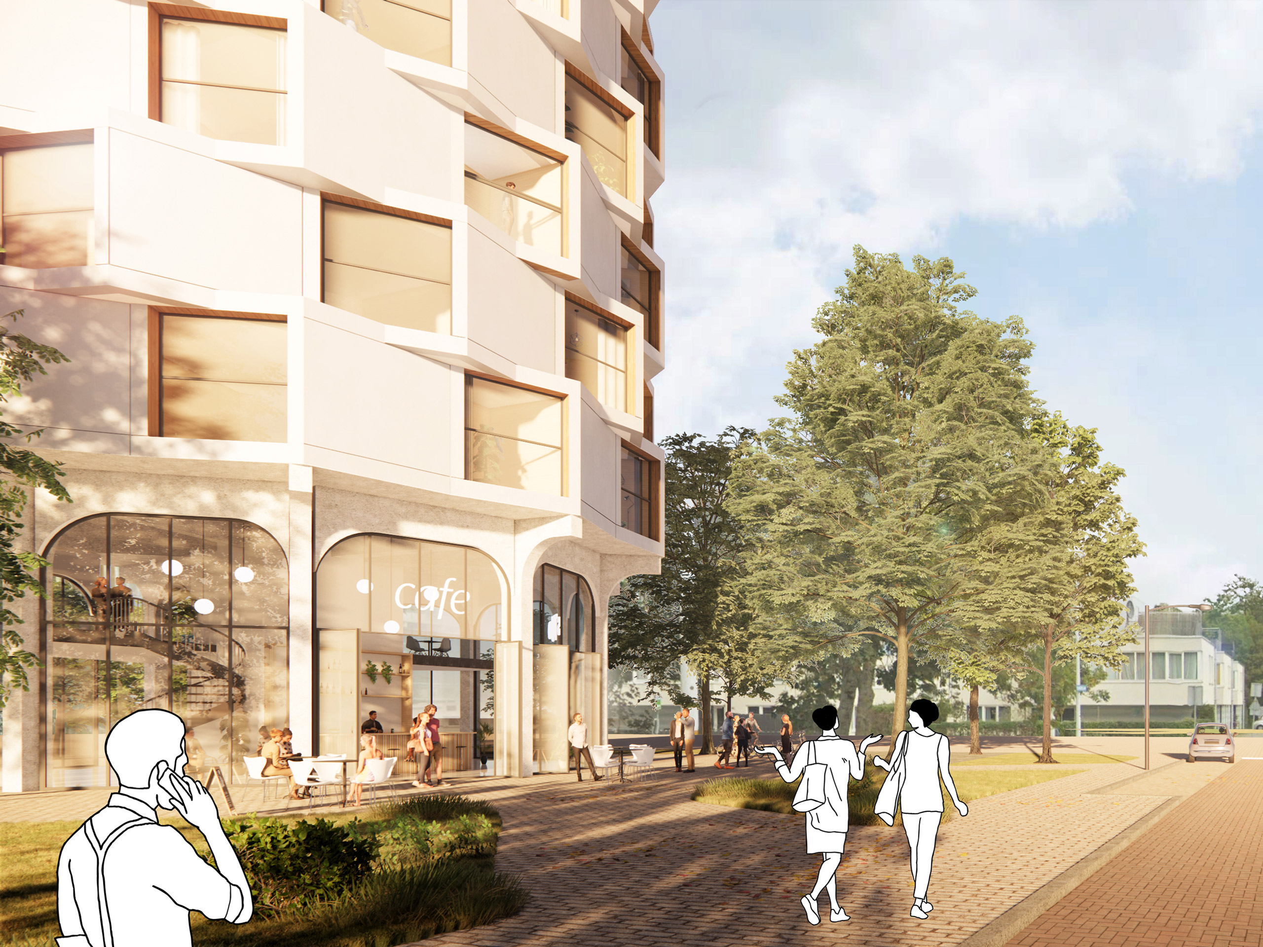 Door de twee modules slim af te wisselen ontstaat er een bijzondere gevel met verspringende ramen. Ook geven de modules de mogelijkheid tot talloze configuraties en kunnen ze na enige tijd worden verplaatst. Zo is het principe op meerdere manieren duurzaam, zowel in materiaal als hergebruik!