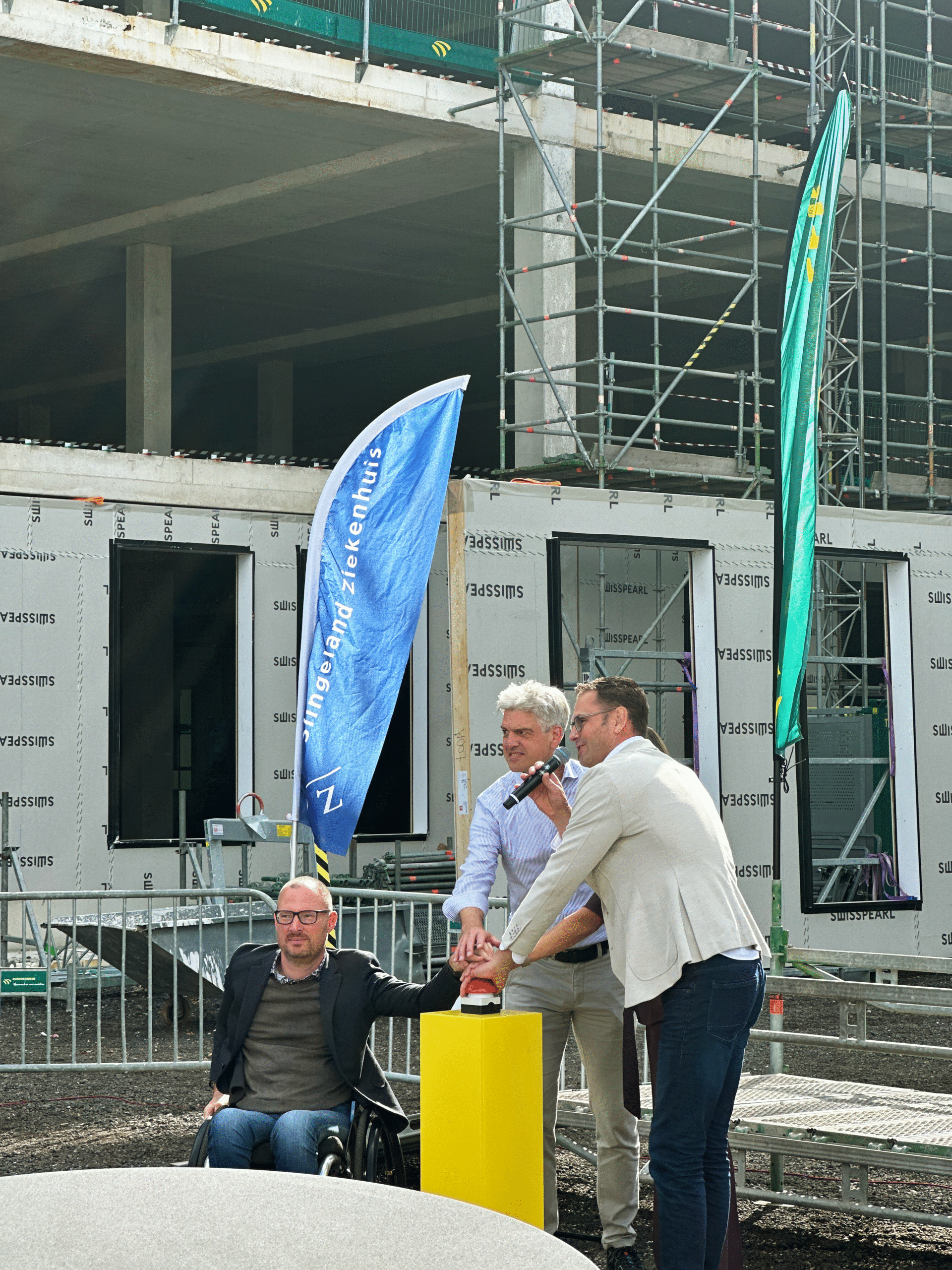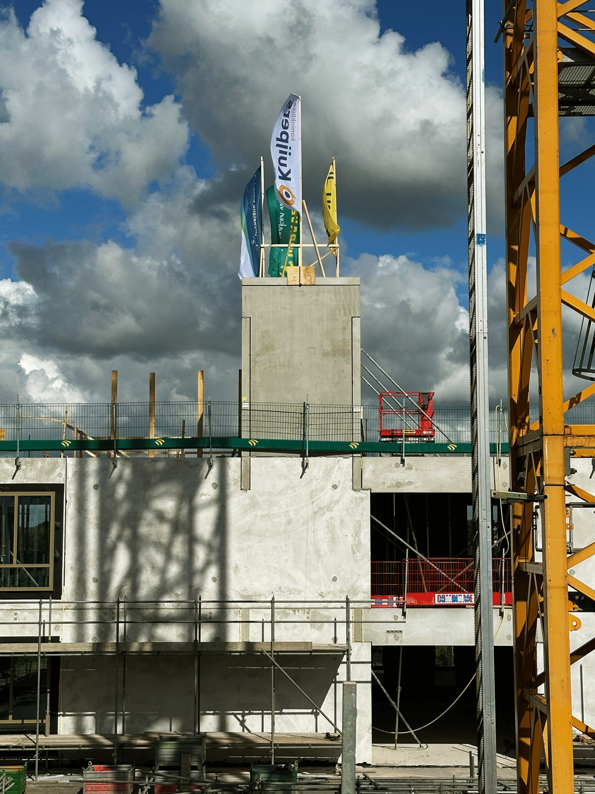 Tijdens de viering van dit bouwkundige hoogtepunt sprak Janet Rekker de genodigden toe. Samen met Otwin van Dijk en Jeroen Gietema gaf zij daarna het startsein voor het hijsen van het hoogste element.