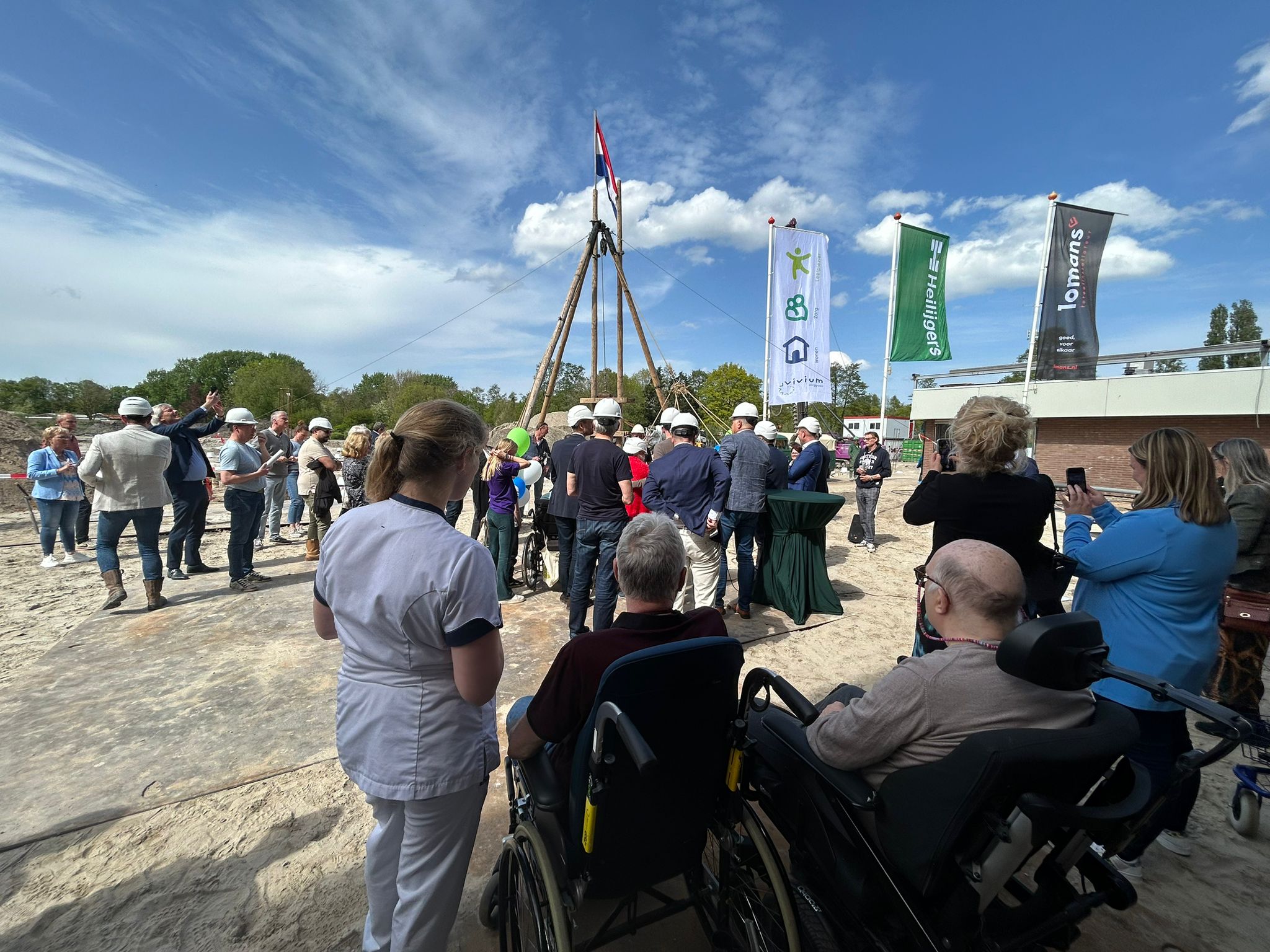 In de stralende zon is vorige week de eerste paal geslagen met bestuurders, bouwers en clienten van ‘ons’ Naarderheem, geriatrische revalidatie zorg van Vivium Zorggroep.