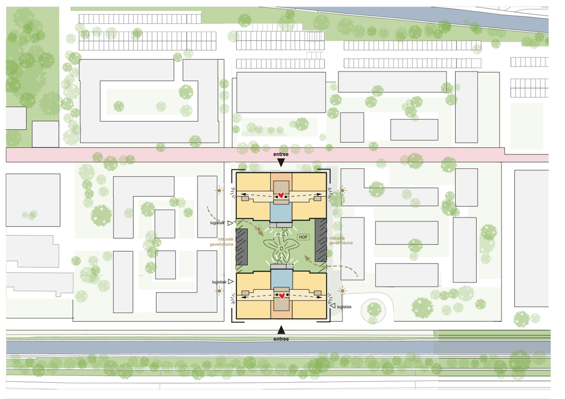 Gedurende het ontwerpproces hebben we binnen ieder schaalniveau de gebruiker centraal gesteld. Van studio en verdieping naar gebouw en omgeving, en terug. Het nieuwe gebouw aan de Westtangentzijde wordt speciaal ontwikkeld voor ouderenzorg. Daarnaast komt er op de begane grond ruimte voor het opleidingscentrum van Magentazorg, kantoren voor Zorg aan Huis, en een dialysecentrum (via Noordwest Ziekenhuisgroep).